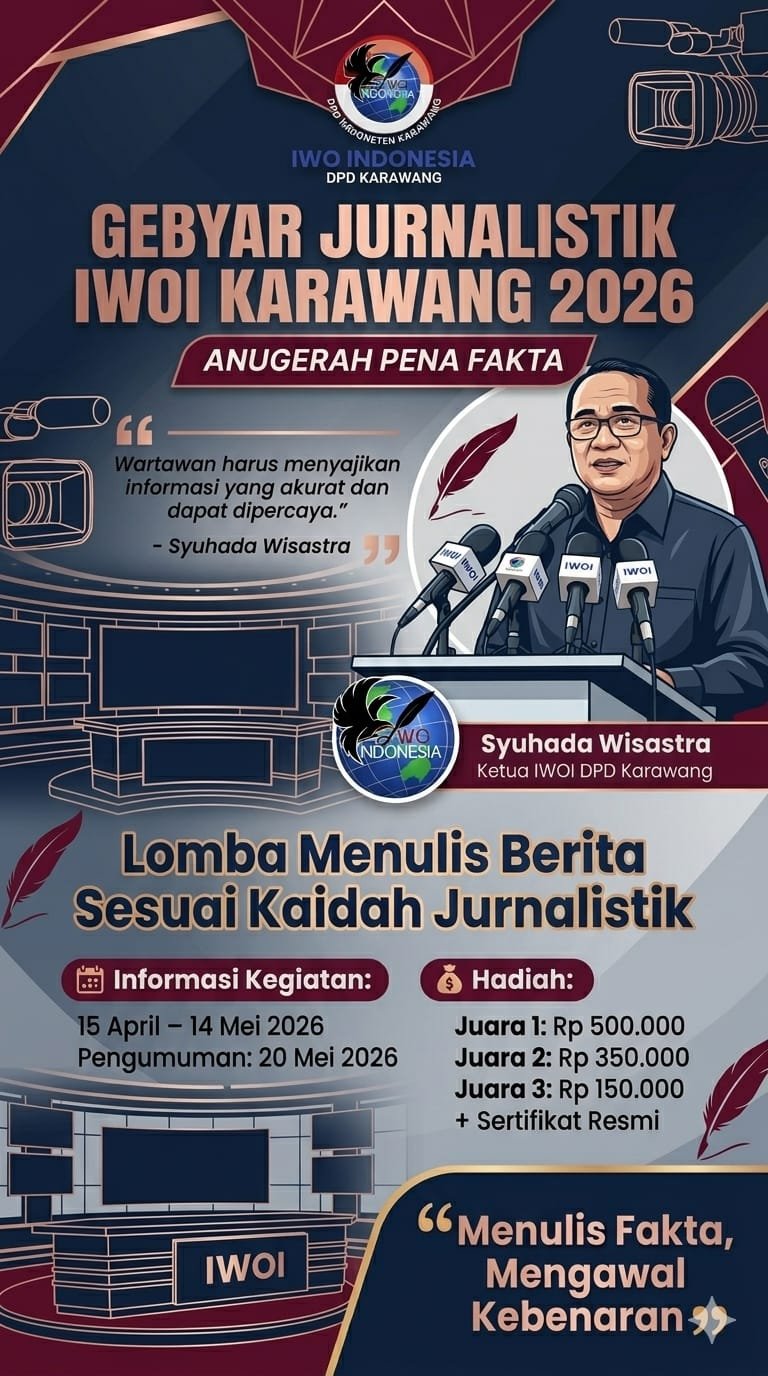 Kegiatan ini akan berlangsung mulai 15 April hingga 14 Mei 2026, dengan pengumuman pemenang dijadwalkan pada 20 Mei 2026. Lomba ini bertujuan untuk meningkatkan kualitas dan profesionalisme jurnalis, khususnya di lingkungan IWOI Karawang.
