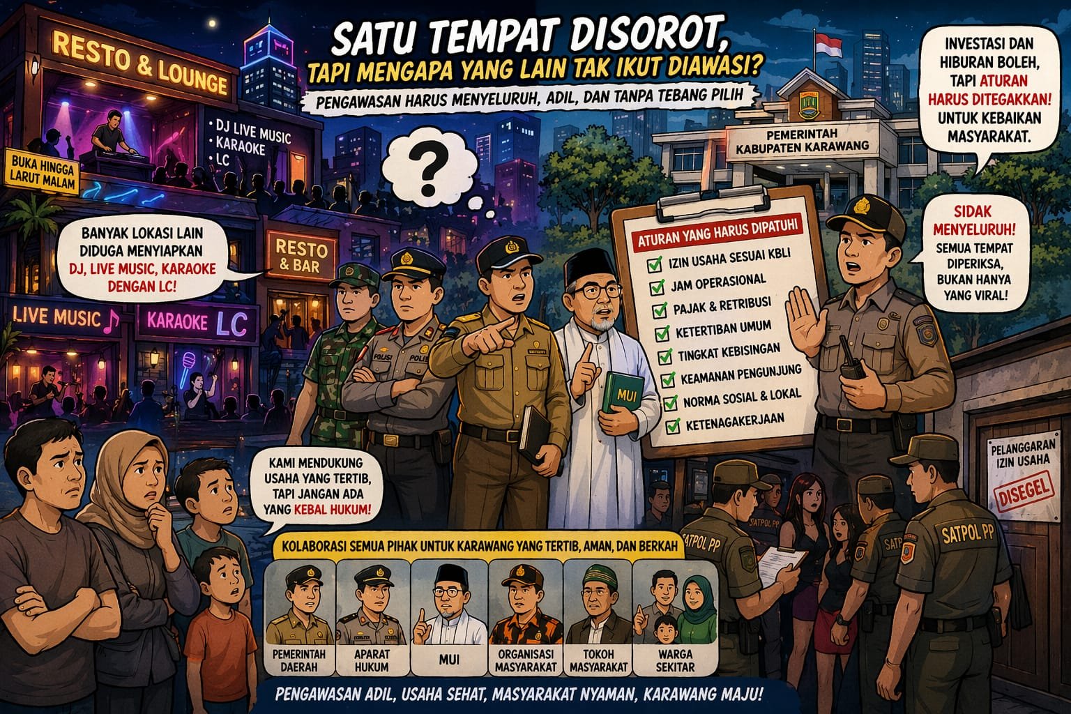 Di tengah geliat ekonomi Karawang yang terus tumbuh, keseimbangan antara investasi, hiburan, moral sosial, dan kepastian hukum menjadi pekerjaan rumah bersama. Karena pada akhirnya, yang dibutuhkan bukan sekadar razia sesaat, melainkan tata kelola yang konsisten dan berkeadilan.