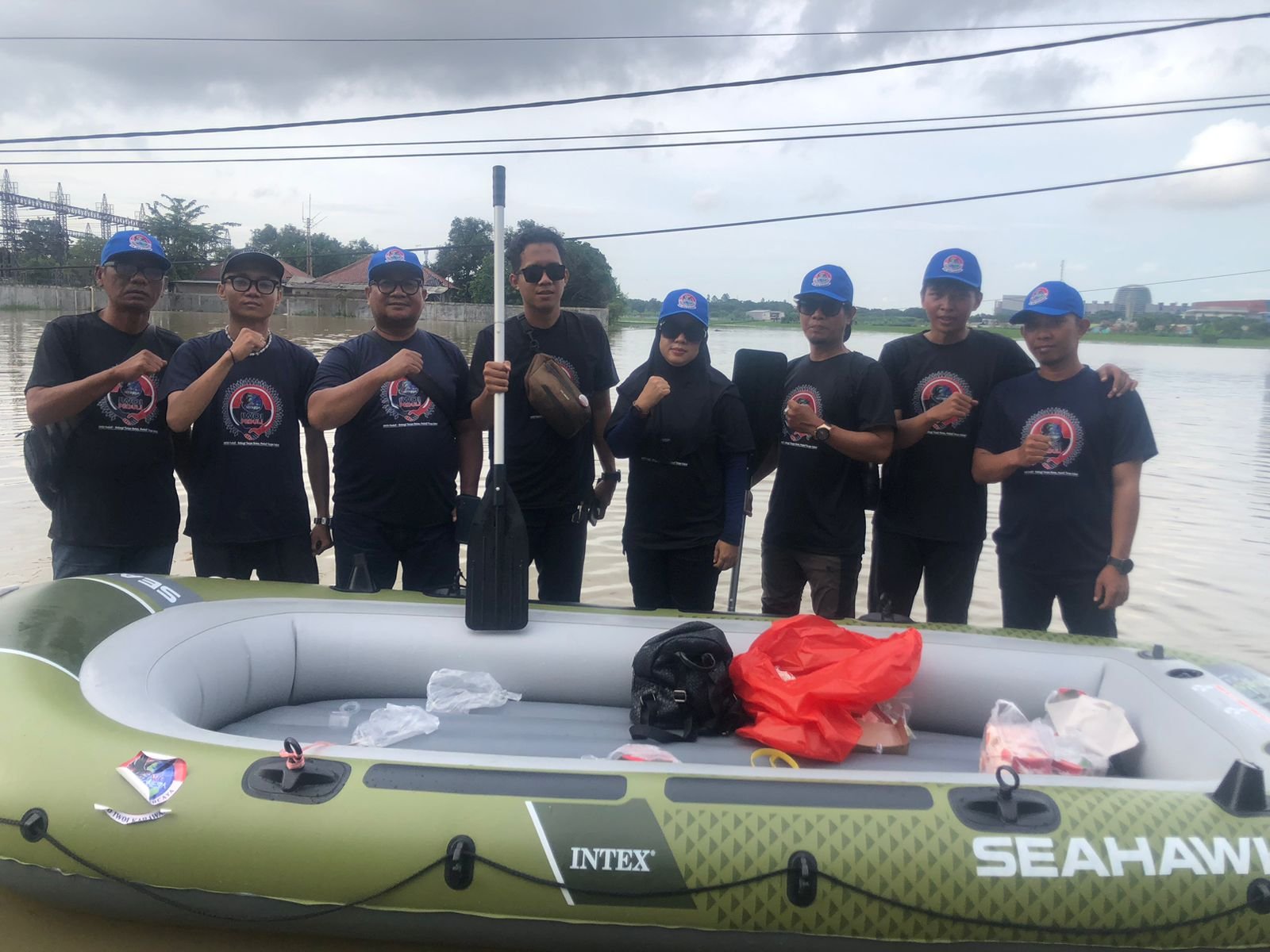 Untuk menjangkau warga di titik-titik terisolasi, Tim IWOI Peduli mengerahkan perahu karet yang dimiliki organisasi, menyusuri rumah-rumah warga di tengah genangan.