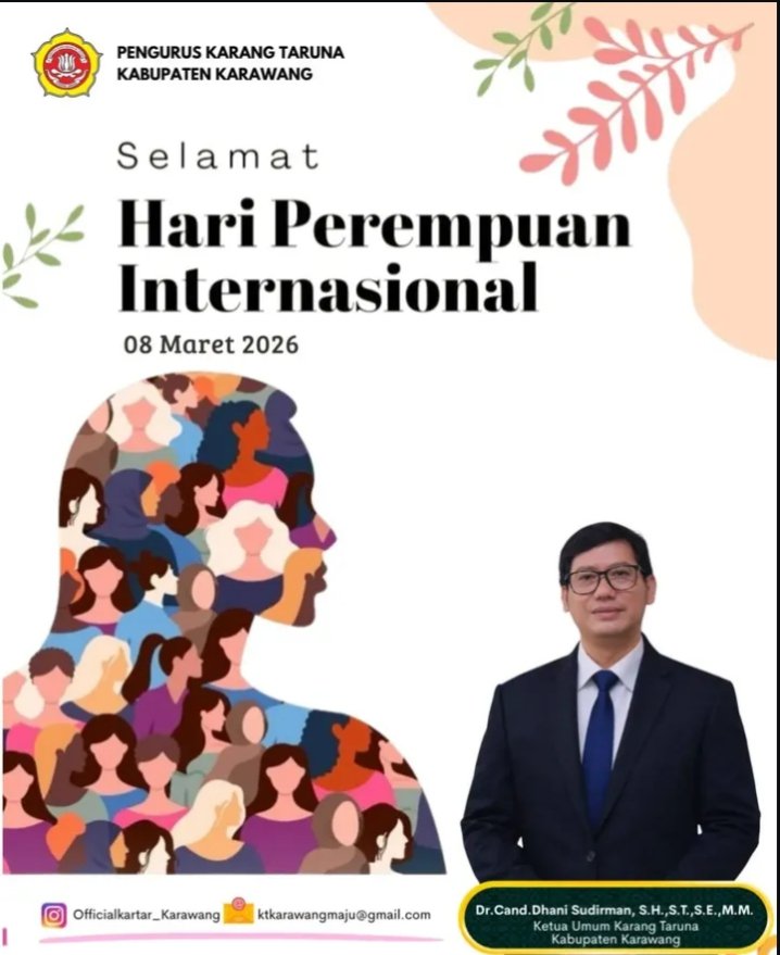 Karawang | Jelajahdesa.click — Dalam rangka memperingati Hari Perempuan Internasional, Ketua Umum Karang Taruna Kabupaten Karawang, Dr. (C). Dhani Sudirman, S.H., S.T., S.E., M.M., menyampaikan pesan penghormatan dan apresiasi kepada seluruh perempuan atas peran besar mereka dalam membangun keluarga, masyarakat, dan bangsa.