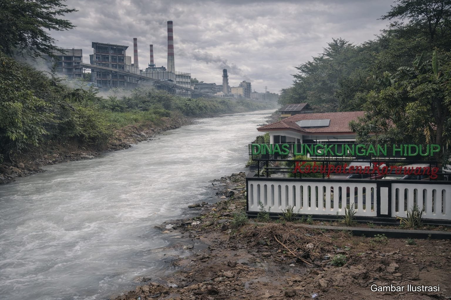 ‎Karawang | Jelajahdesa.click  — Air itu tak lagi jernih. Ia berubah menjadi putih pekat, seperti susu yang tumpah ke aliran sungai. Namun yang mengalir bukan kehidupan—melainkan kecemasan.